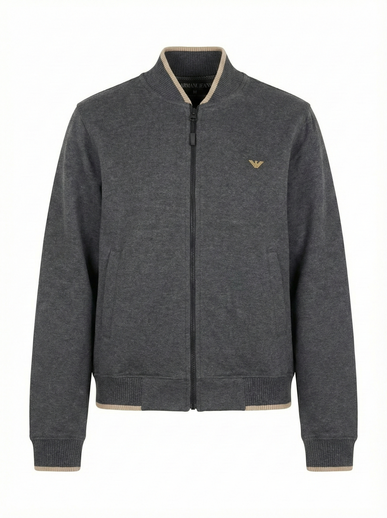 Armani Cotton Fleece Bomber Jacket - Dark Gray