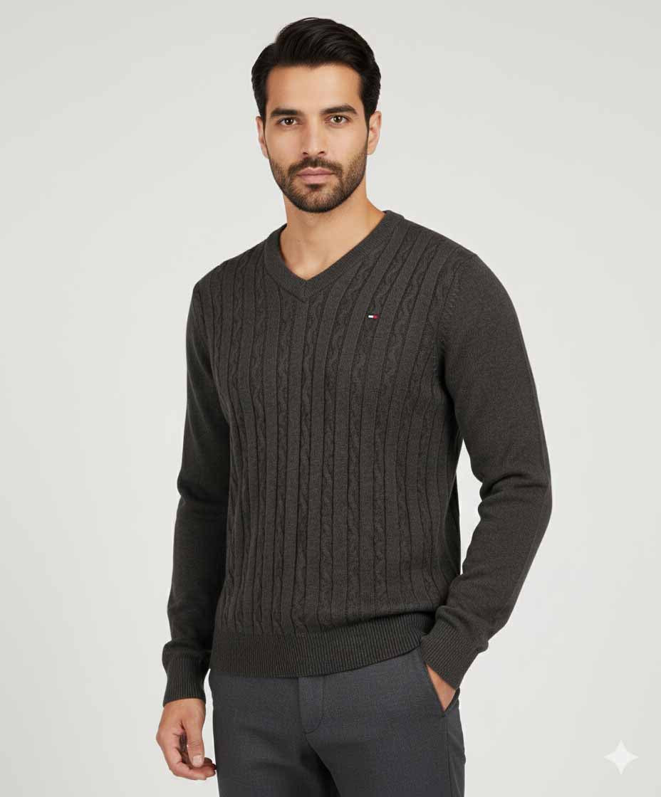 Tommy Hilfiger Classic V-Neck Sweater - Charcoal Gray
